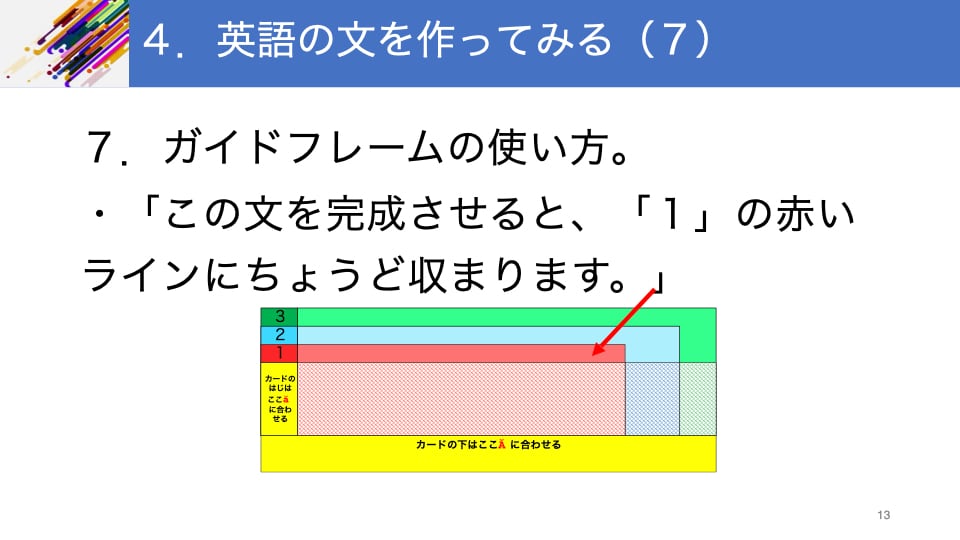 単語のカードをガイドフレームの上に並べて英語の文を作ろう!!